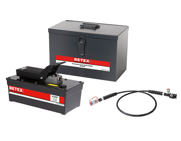 - Die luftgetriebenen Hydraulik-Fußpumpen AP 3000 and AP 8000 sind für Hydraulikmuttern mit einer erforderlichen Ölkapazität von bis zu 3 Litern bzw. 8 Litern geeignet. Der Bediener hat wegen der Fußschalter immer beide Hände frei.