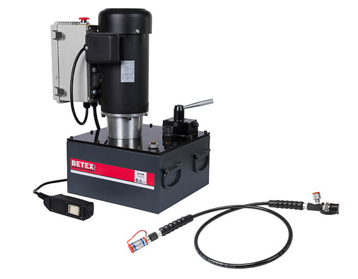 - Die elektrische Hydraulikpumpe EP 320S ist für alle Hydraulikmuttern geeignet. Mit der Fernbedienung kann sie aus einer Entfernung von bis zu 3 Metern bedient werden.