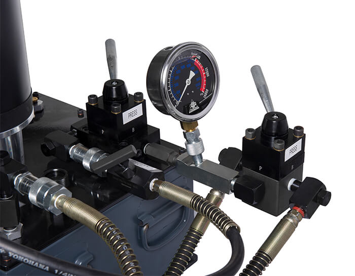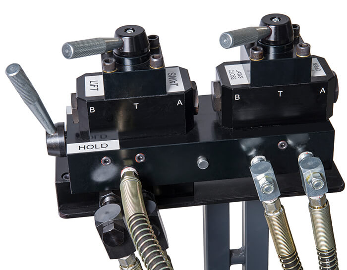 • An electrohydraulic 400V-700 bar pump operates the cylinder, height adjustment and arms. This is a 2-stage pump with an output of 9.5 litres/minute at 7 bar counter pressure.