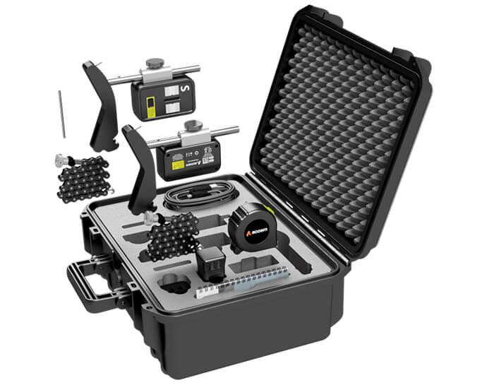 Fixturlaser AT-100 se compone de dos sensores inalámbricos. El uso de láseres de línea reduce el tiempo de ajuste. Para hacerlo aún más fácil, los sensores vienen premontados y están preajustados con la configuración más común.