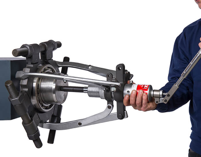 El diseño único patentado crea una extensión máxima y aplica una fuerza uniforme. La placa de tres secciones se puede montar detrás de los aros interno y externo del rodamiento. Así se evita que la fuerza de extracción se transmita por las piezas móviles, para que no se dañe el rodamiento.