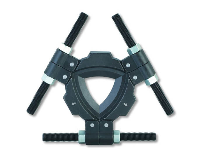 El diseño único patentado crea una extensión máxima y aplica una fuerza uniforme. La placa de tres secciones se puede montar detrás de los aros interno y externo del rodamiento. Así se evita que la fuerza de extracción se transmita por las piezas móviles, para que no se dañe el rodamiento.