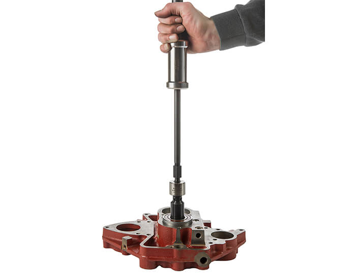 Los modelos mayores están equipados con un adaptador de extracción cónico en el dilatador que evita la fricción al apretar el tornillo. Los rodamientos, casquillos, juntas de estanqueidad, etc. se extraen sin esfuerzo.