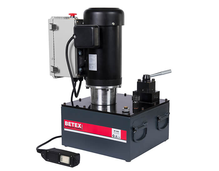• Bomba electrohidráulica, motor universal de 230/400 V, 50/60 Hz, protección térmica.